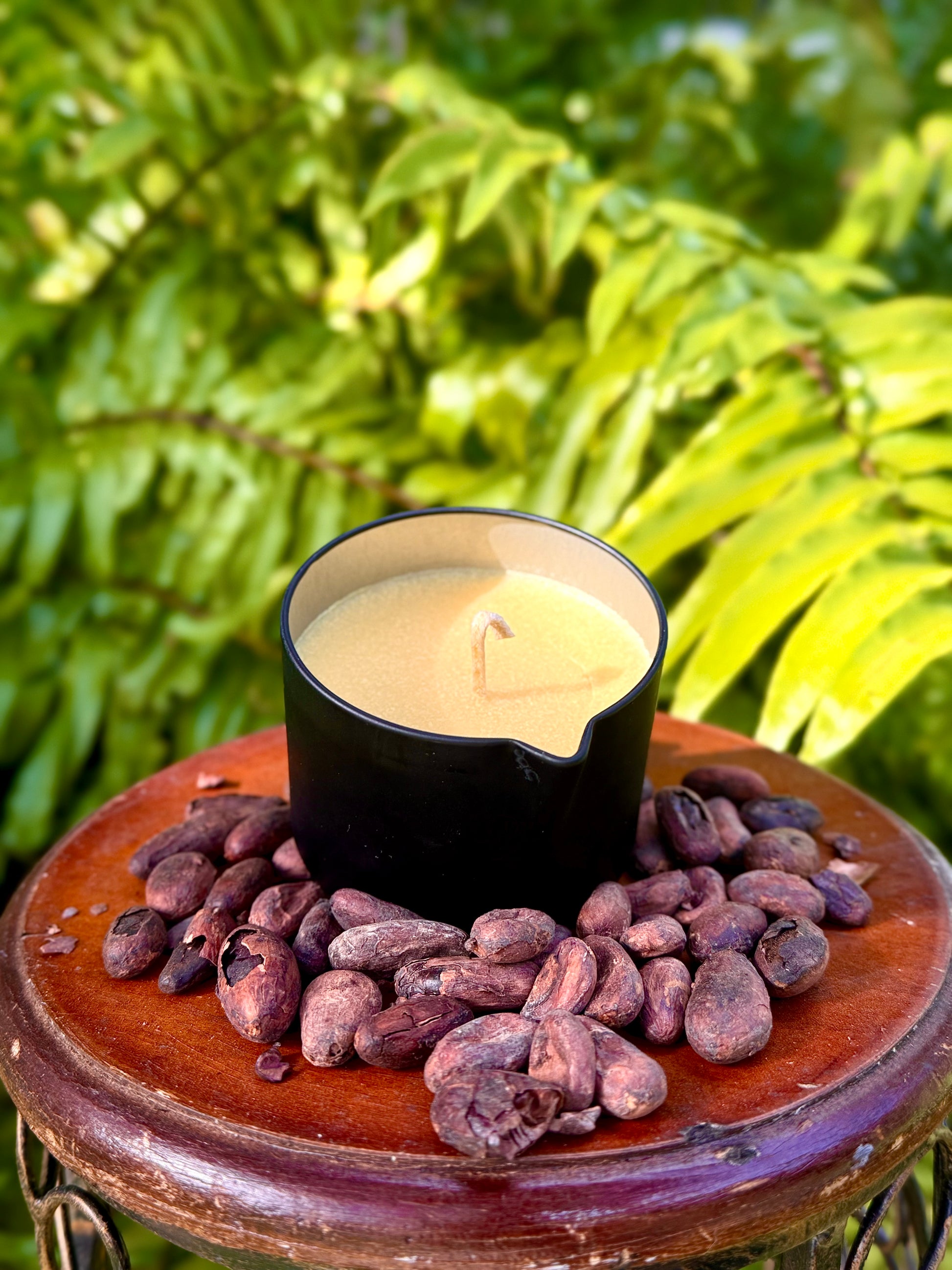 Experience the perfect blend of hydration, relaxation, and protection with our Cacao Butter Massage Candles. Ignite, pour, and pamper yourself with this divine chocolate aroma and touch the best oil pachamama has to offer. Pour the melted wax directly onto your skin without any worry of burns. Cacao butter melts at a low temperature, ensuring a soothing, warm application that's perfect for massages.